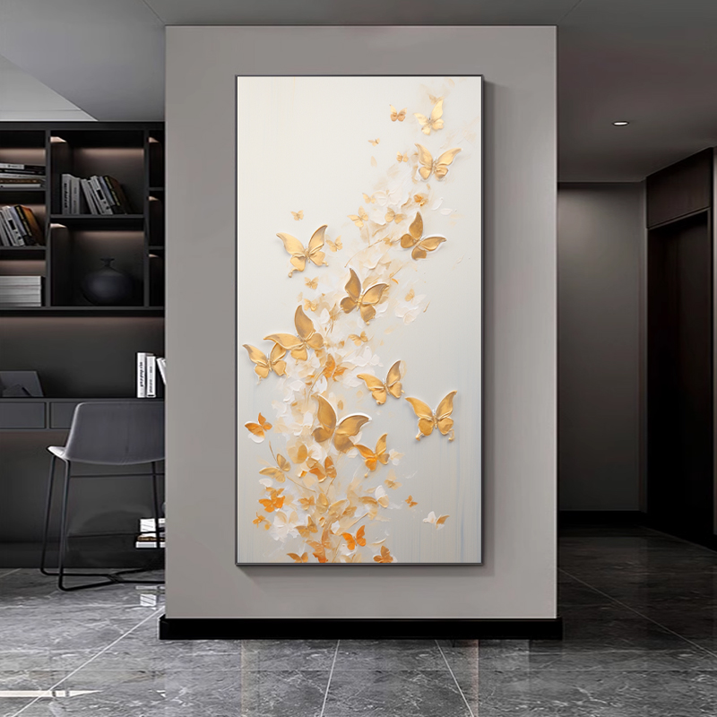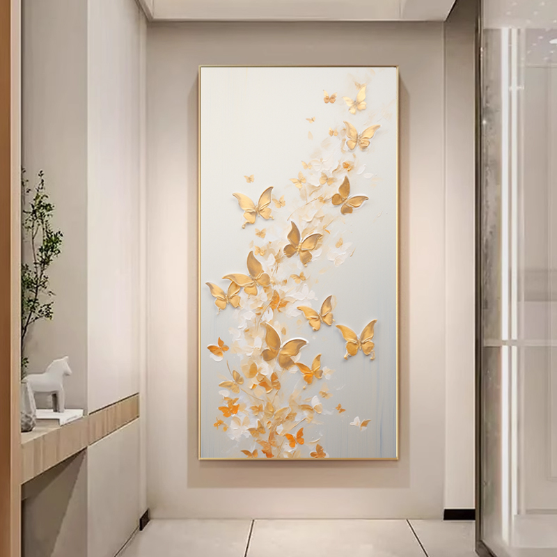 New hand-painted oil painting "Butterfly Romance" into the family Xuanguan Decorative Painting Light Luxury Superior Sense Corridor Aisle Hanging Painting Vertical-Taobao