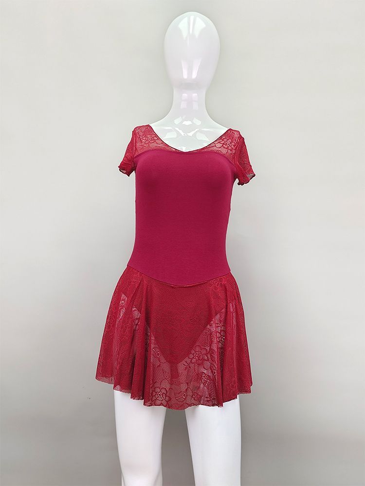 Clear Barn Adult Ballet Dancer Dress Conjoined Dance Suit Lace Short Sleeve One-piece Dress Body Dance Practice-Taobao