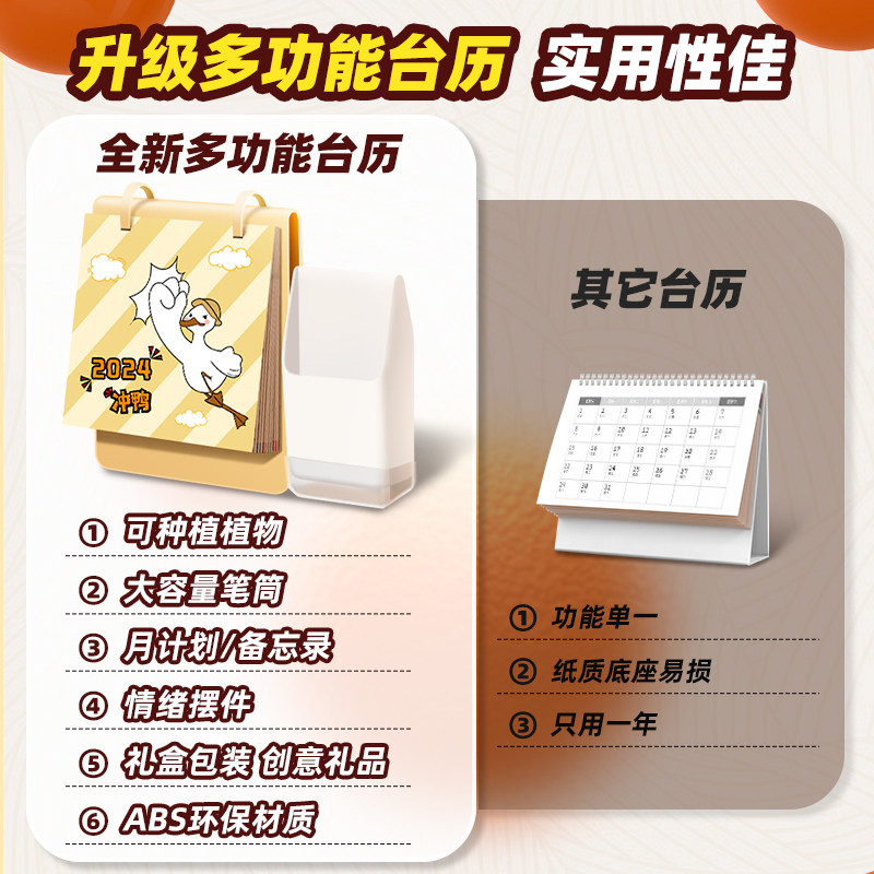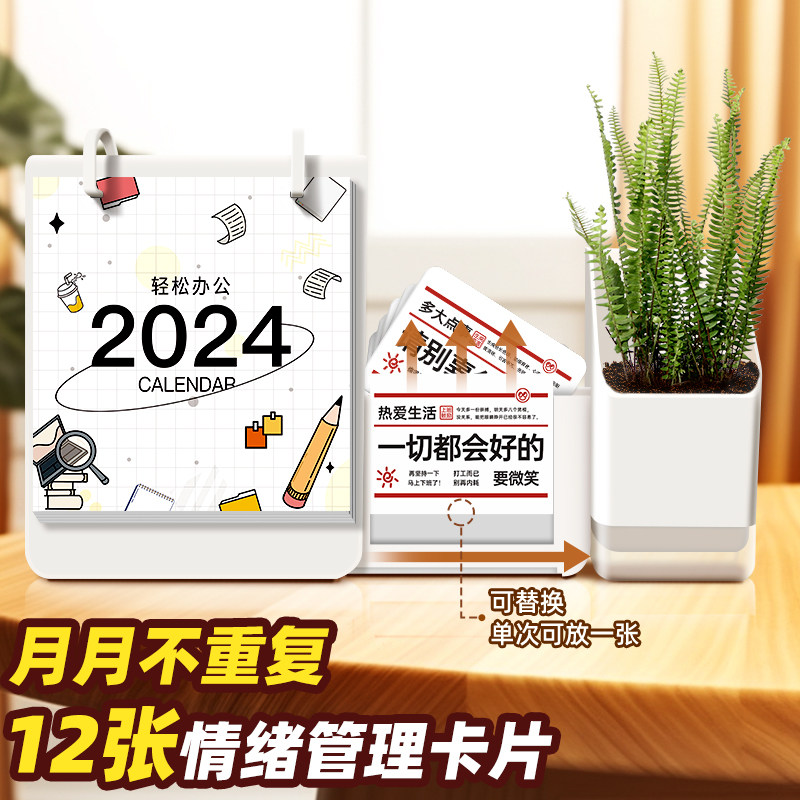 Table Calendar 2024 New Office Creative Calendar Desktop Swing Piece Cultivation Decompression Work Mood Lunar Calendar Booking Courtesy Box Examination Multifunction Dragon Year New Year Desk Calendar Customized-Taobao