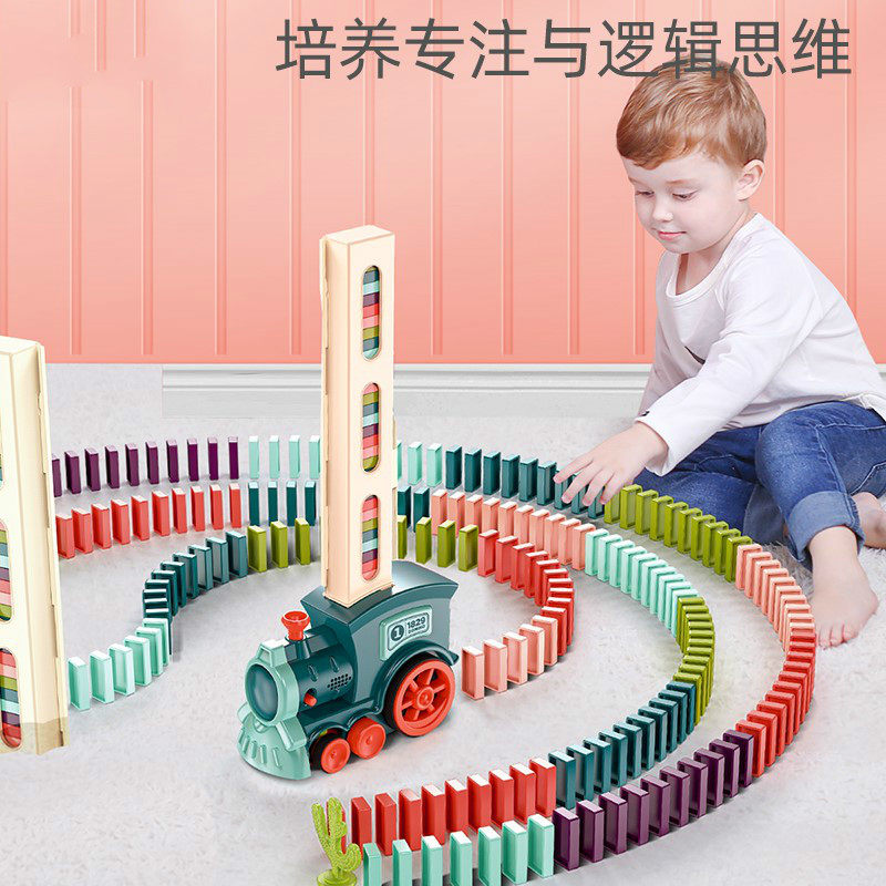 Domino dominoes automatically licensed to put electric small train toys 3-6-8-year-olds Puzzle Netting Red Toys-Taobao
