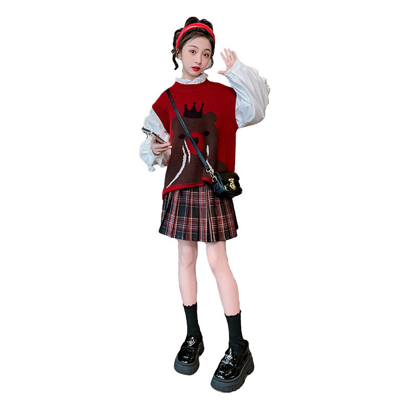 Girl's autumn winter one-piece dress 2024 new Yangqi Children's college Wind Winter Women's Dress New Year jk suit skirt-Taobao