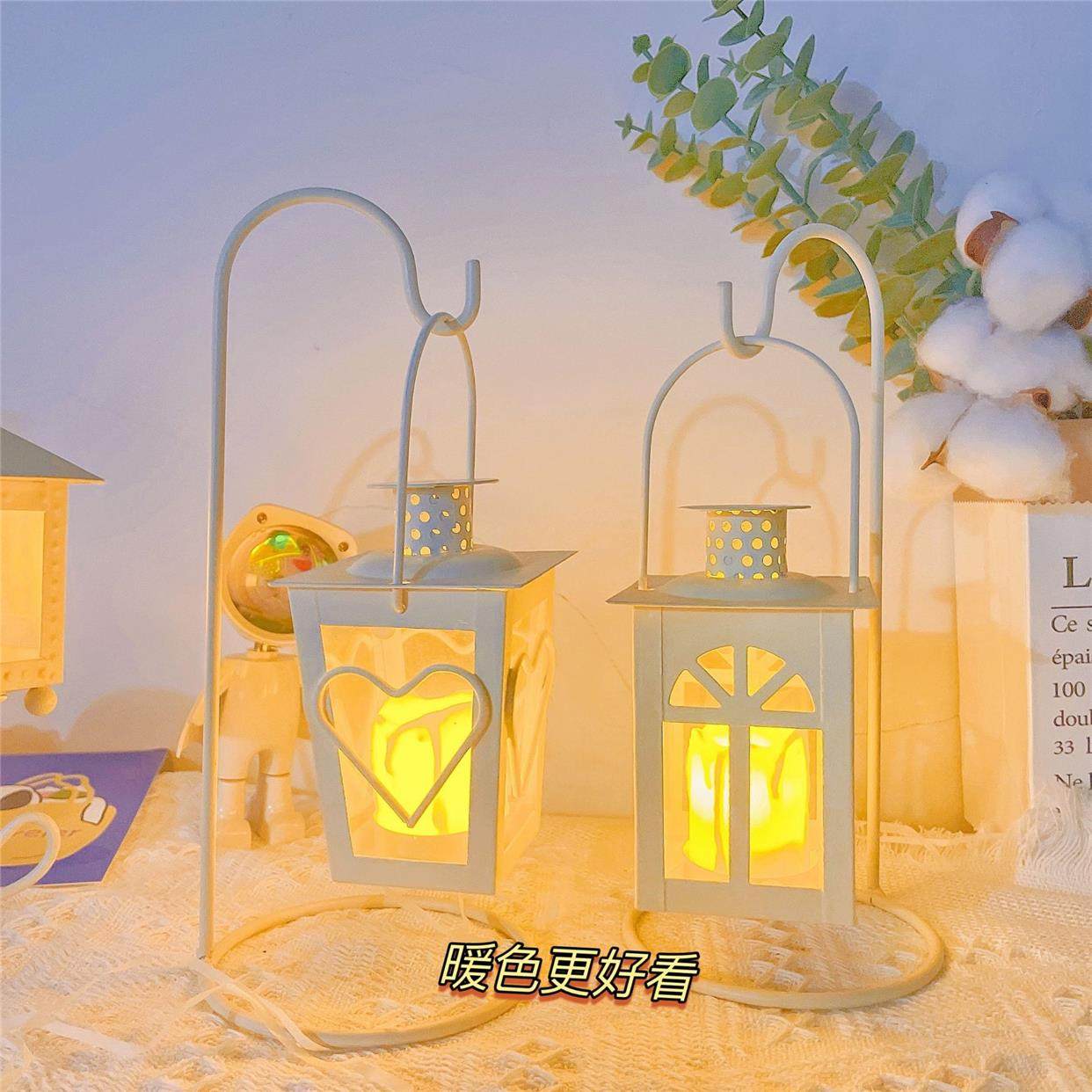 ins girl heart iron art Nordic hanging lamp candleholder candleholder iron frame sub-square iron swing piece creative little night light-Taobao