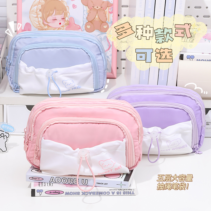 5 Floors Mega-Capacity Cute Pen Bag Junior High School Special Girls Ins Wind Day Department High Face Value Girls Elementary School Students Brief High School Middle School Students Pencil Case Lead Pencil Case Multilayer Stationery Bag Boy-Taobao