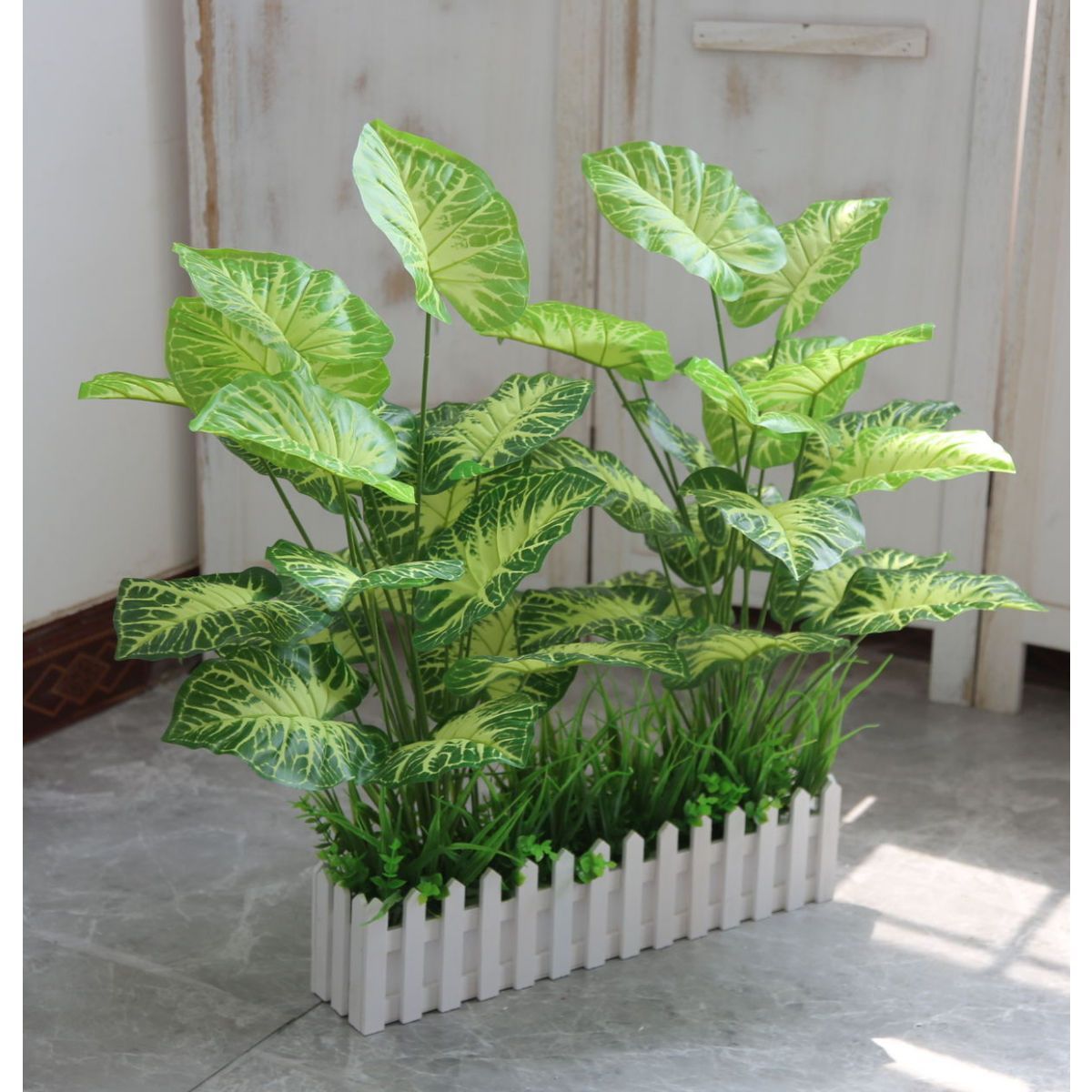 Ground floor large green planting potted shop window display plastic flower pot high in plant fake tree decoration net red wood fence flower-Taobao