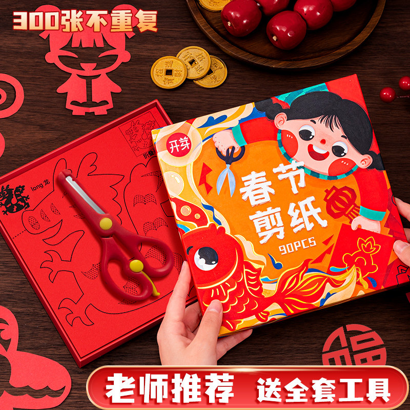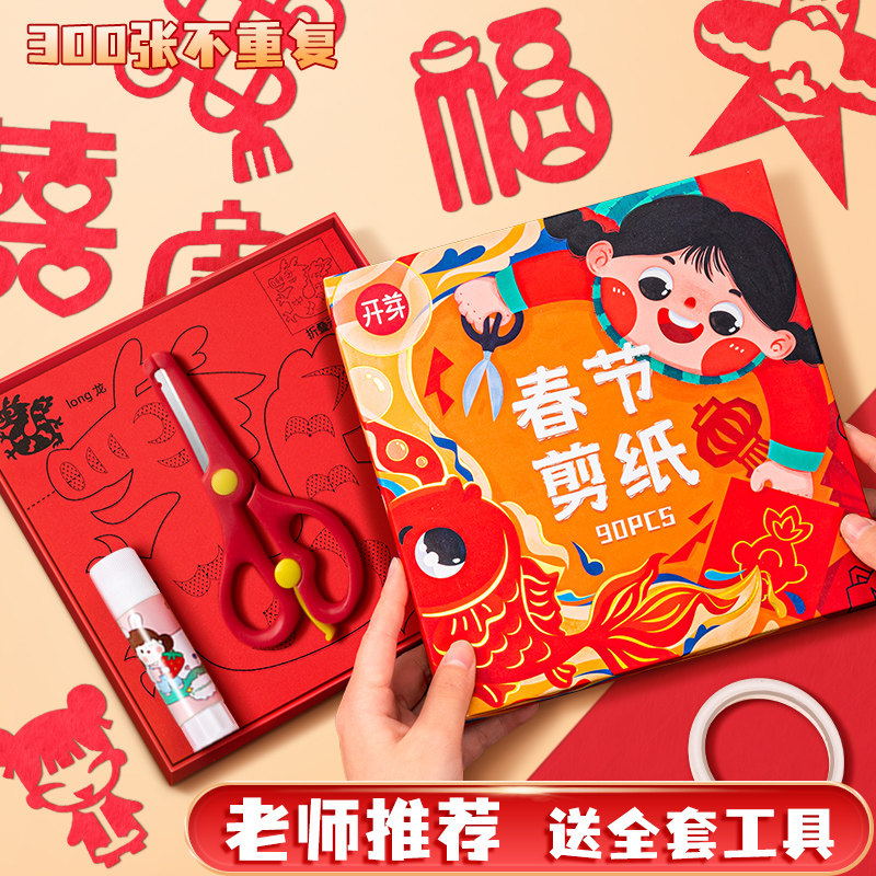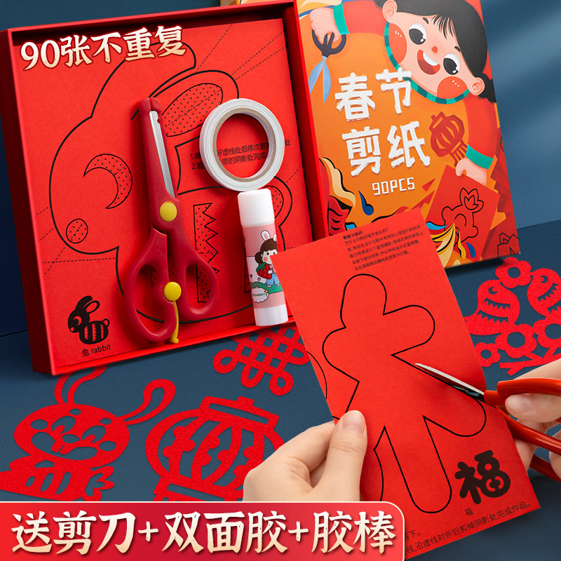 (boxed-Spring Festival cut paper -90 sheets not repeated) SEND SCISSORS Glue Sticks Without Mark (Forword cut paper -30 sheets not repeated) SEND SCISSORS Glue Stick Without Mark (Window Flower Cut Paper-Large Size 3)