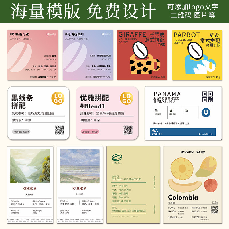 Coffee Bean Packaging Bags Label Origin Information Stickers Custom Outer Packaging Box Bean Flavor Description Card Post-Taobao