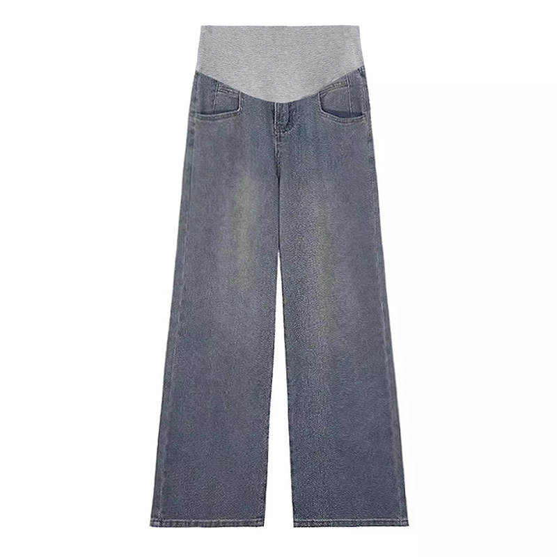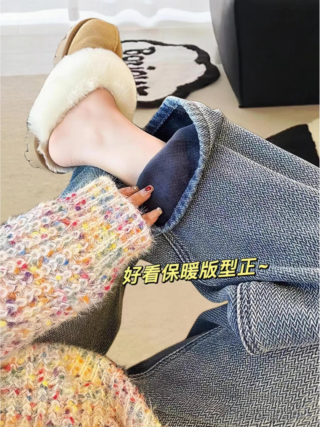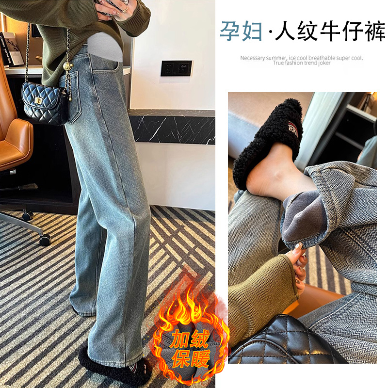 Warm over winter soft glutinous herringbone veins windproof pregnant woman with velvety jeans loose and thin wide legs tall and trousers-Taobao