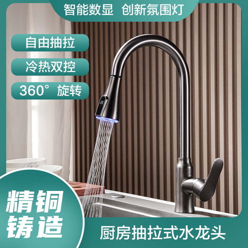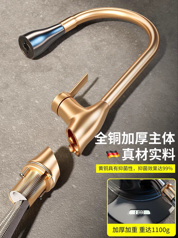 Kitchen tap All-copper washbasin pull-out two-in-one dishwashing pool hot and cold water tank tap Home splash-proof-Taobao