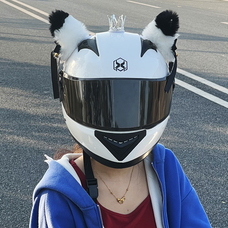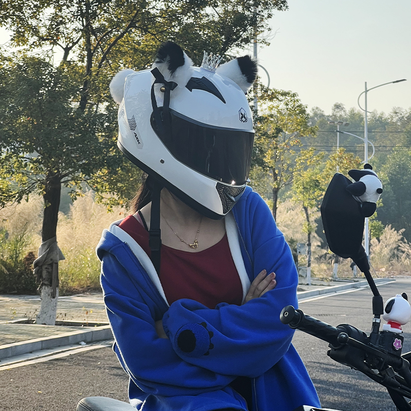 White full armor (with ear crown) black full armor (with ears small panda) pink full armor (with ear crown) white helmet-Lingala Belle (summer light with cool insulation) white helmet-Ling