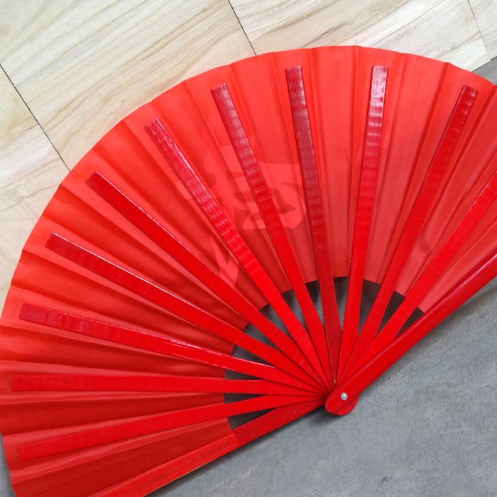 Martial Arts Exercise Performance Tai Chi Fan Songfu Fan fan pure red fan 36cm-1 ruler One bamboo bone cloth face right fan