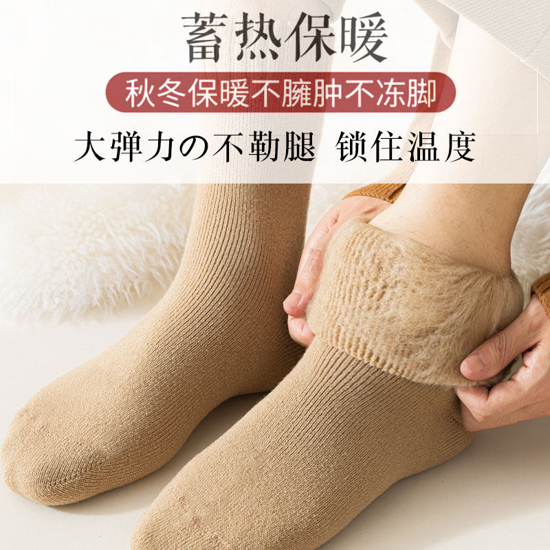 Ultra-thick cashmere socks male midbarrel autumn winter plus suede thickened thermal sleep floor socks winter style wool socks-Taobao
