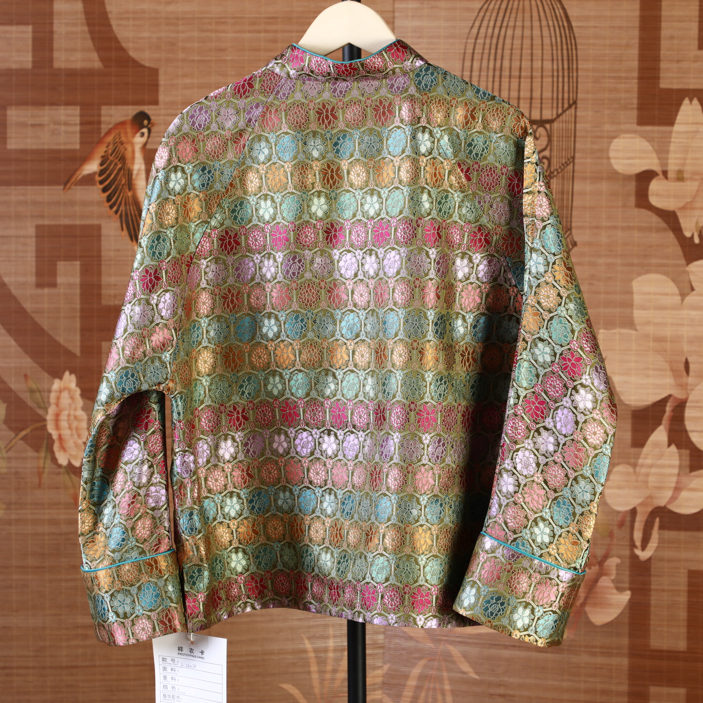One erase micro blue selection 2023 new fragrant cloud yarn double non-relic brocade color lotus flower long sleeve blouse 24036-Taobao
