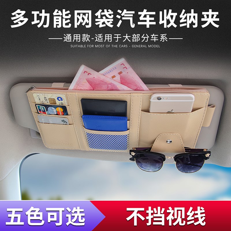Car visor contained on-board glasses case ink mirror clip frame Multi-functional bill document clip CD card bag-Taobao