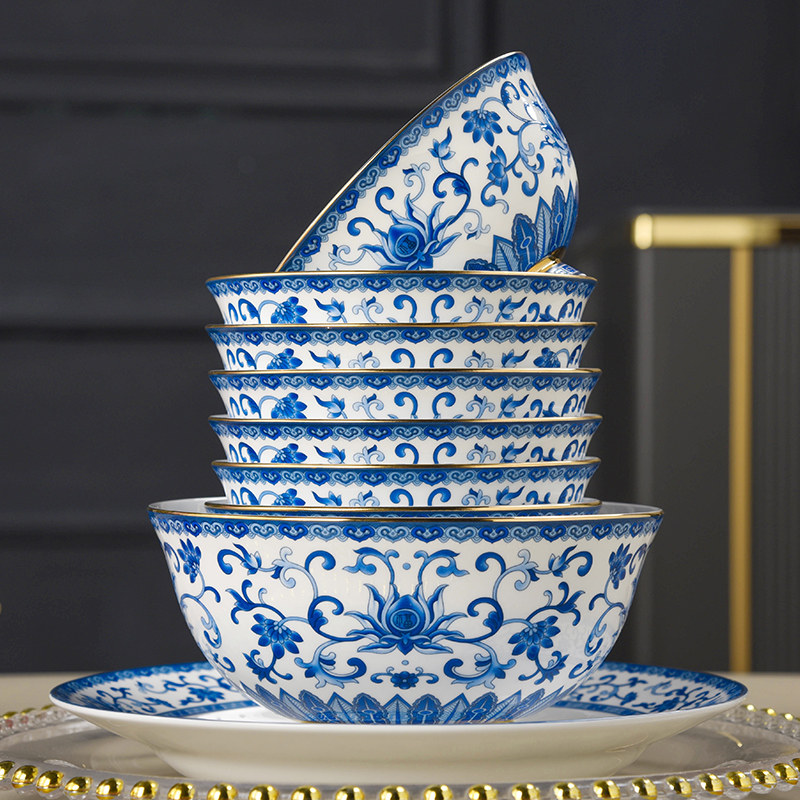Jingdezhen porcelain tableware set enamel Chinese bowls, plates and spoons set high-end dishes for home moving to new home