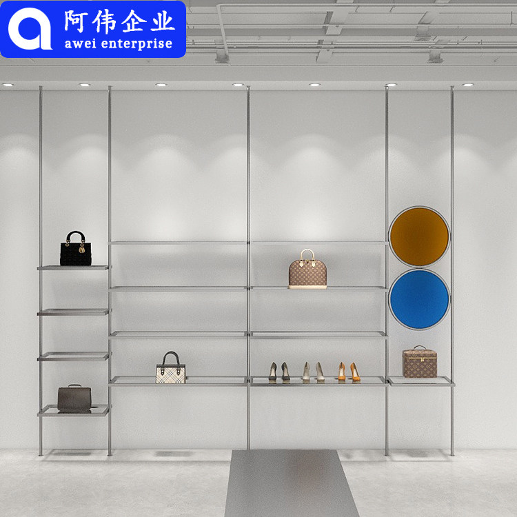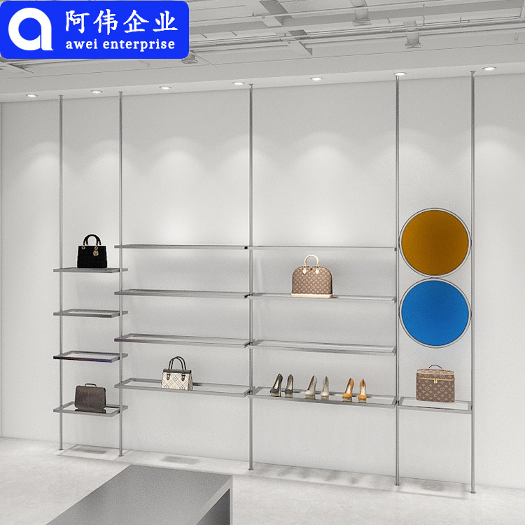 Clothing Store Shoes Bag-containing shelving Stainless Steel Shelf Wall Multilayer Shoe Rack Display Shelf Straight-to-place Show-Taobao