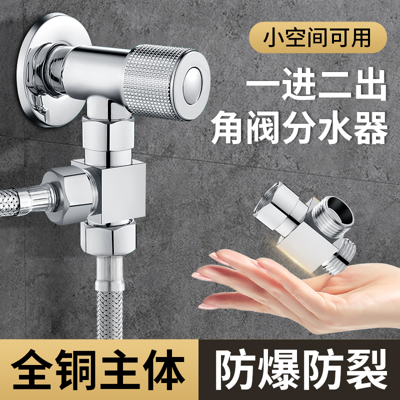 Live-connected three-way water splitting valve with one-in-two-out angle valve water segregator washing machine tap 10%-2 adapter home-Taobao