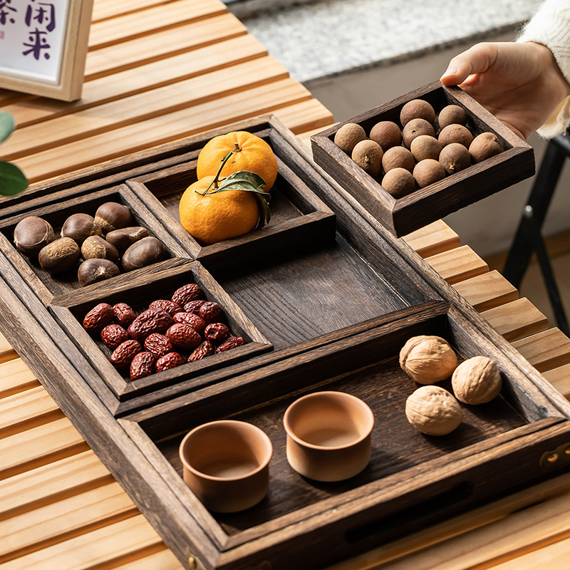 Chinese Wooden Pallet Surround Stove Cooking Tea Accessories Refreshments Refreshments Afternoon Tea Point Pan Pastry Snack Snack Dried Fruits Fruit Pan-Taobao