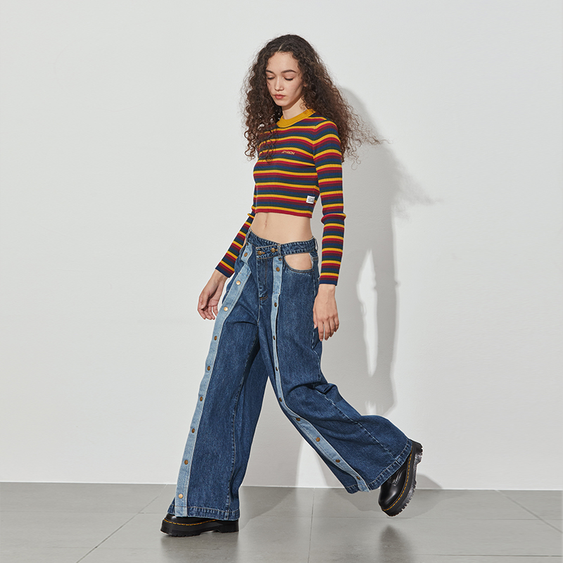 JOYRICH American retro Colour Collision Color Streak Tight Fit Shorts Jersey Undershirt 24 Spring Lady New-Taobao
