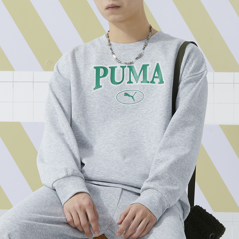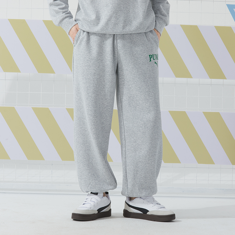 PUMA Puma grey Sport suit Men's winter new round collar necropolis Loose Toe Pants Running Sportswear-Taobao