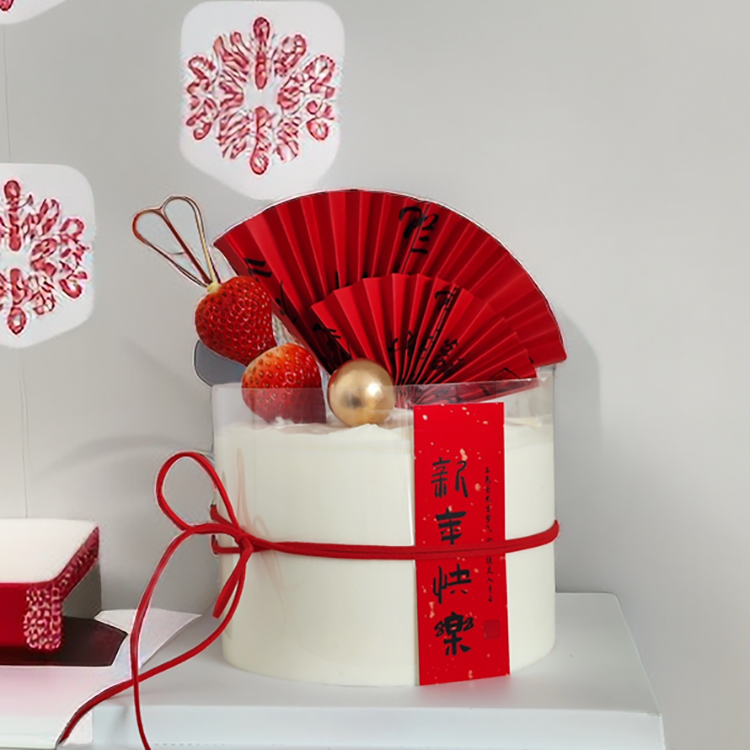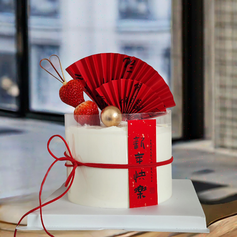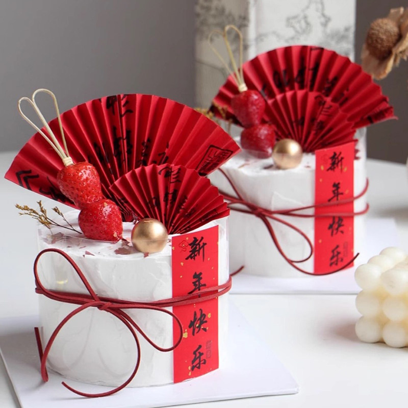 Chinese New Year paper fan suit Chinese New Year's paper fan suit A Chinese New Year paper fan suit can be made 10 cakes red mixed with character sticker red scissors toothpick wine red leather rope red Lanting kiosk with small number
