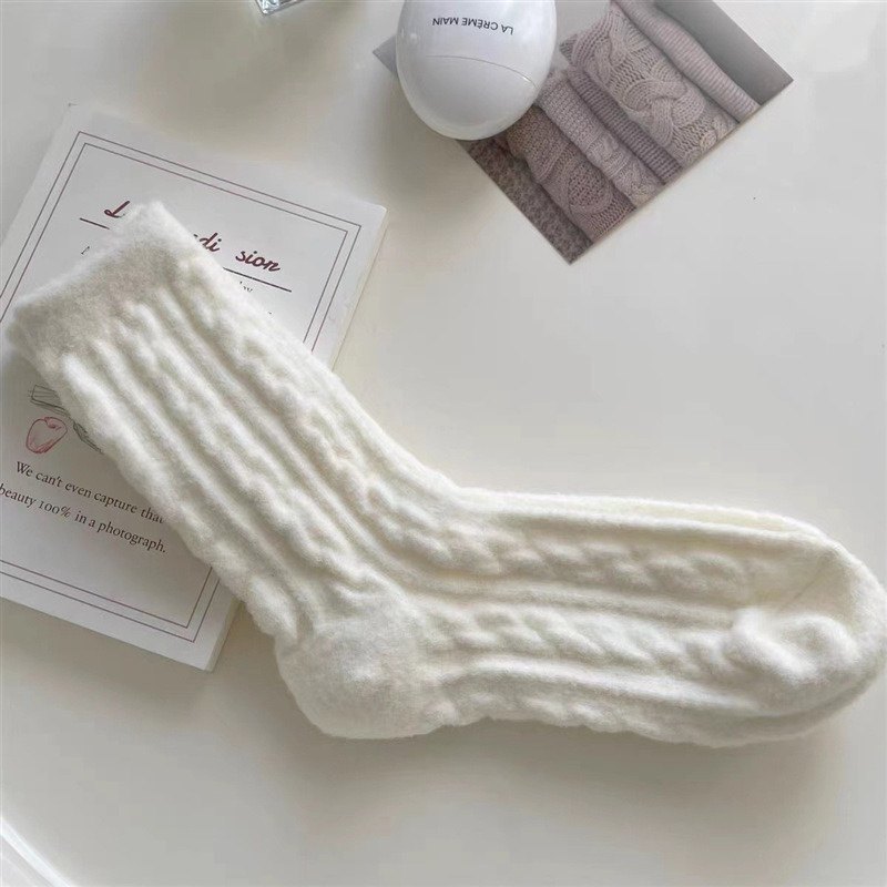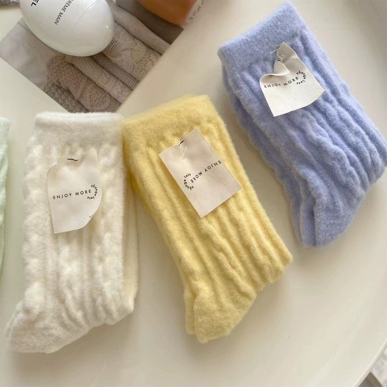 Soft glutinous deodorant hemp flower plush socks Women's autumn winter day series Marcaron color midbarrel socks with velvet anti-cold moon Sox thick-Taobao