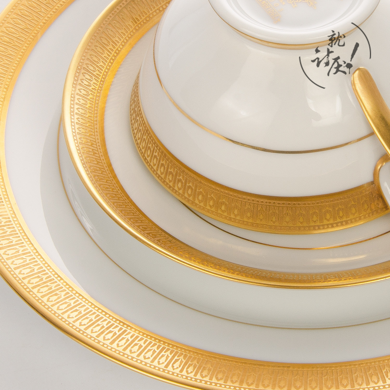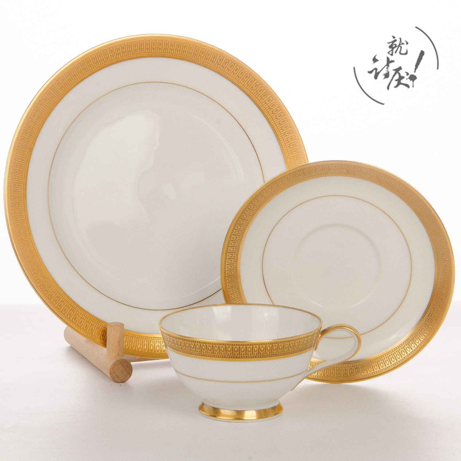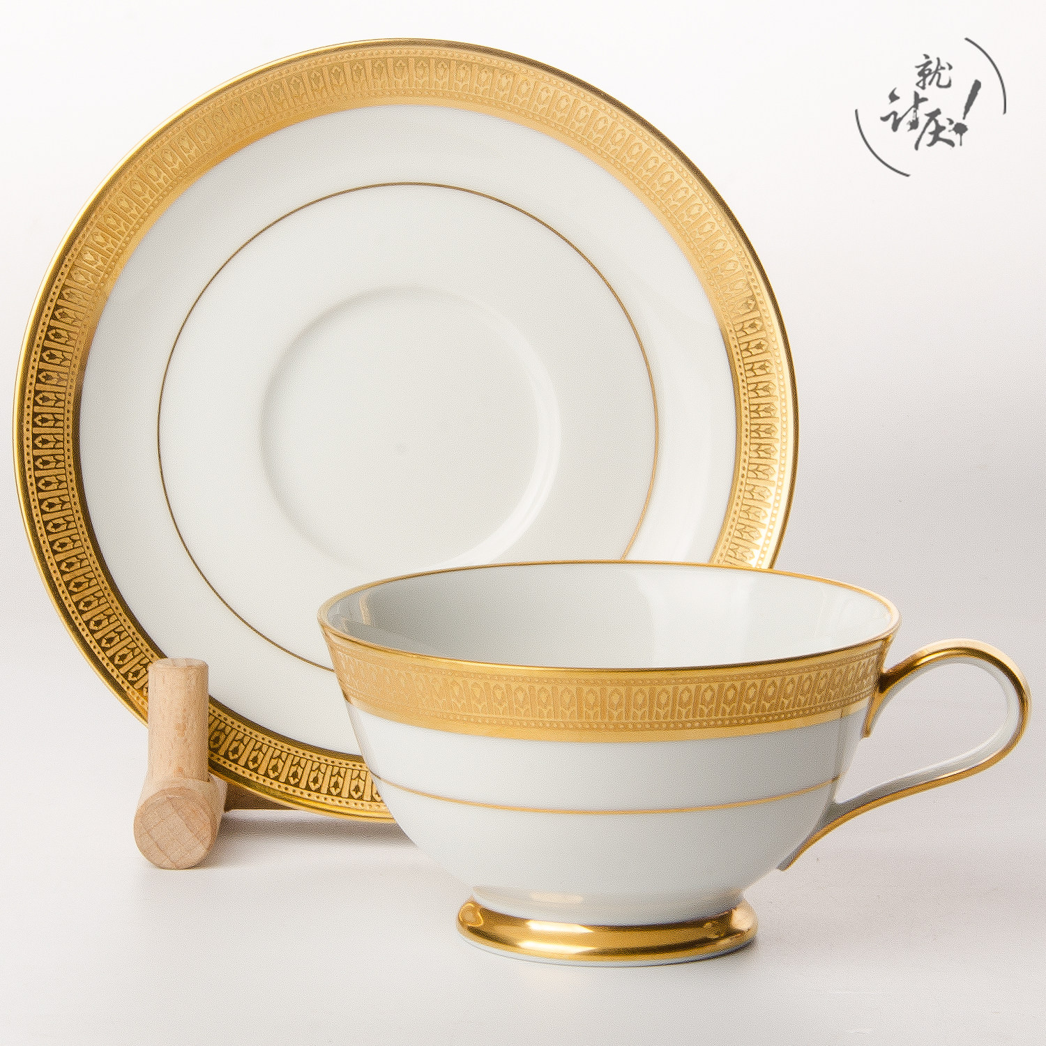 A cup of a dish with a pastry dish (handle the loss of gold)