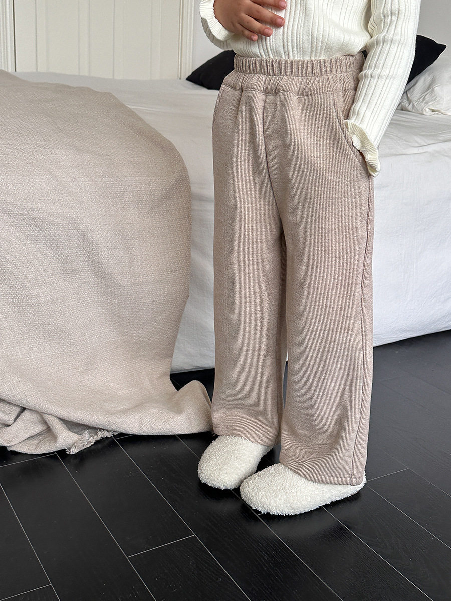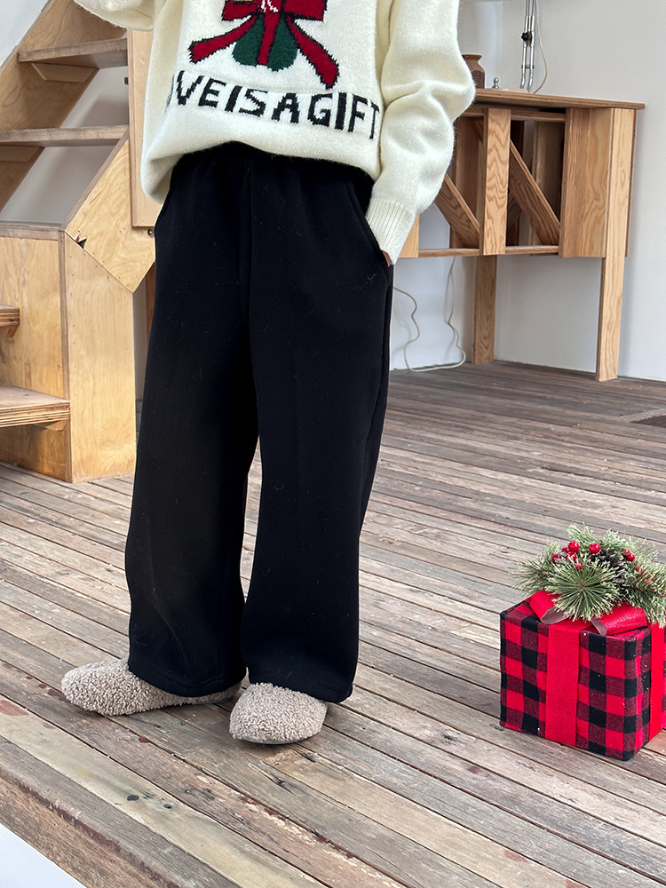 Winter clothing new children pure color casual pants girl pants baby Han version thickened with velvety long pants warm straight drum pants-Taobao