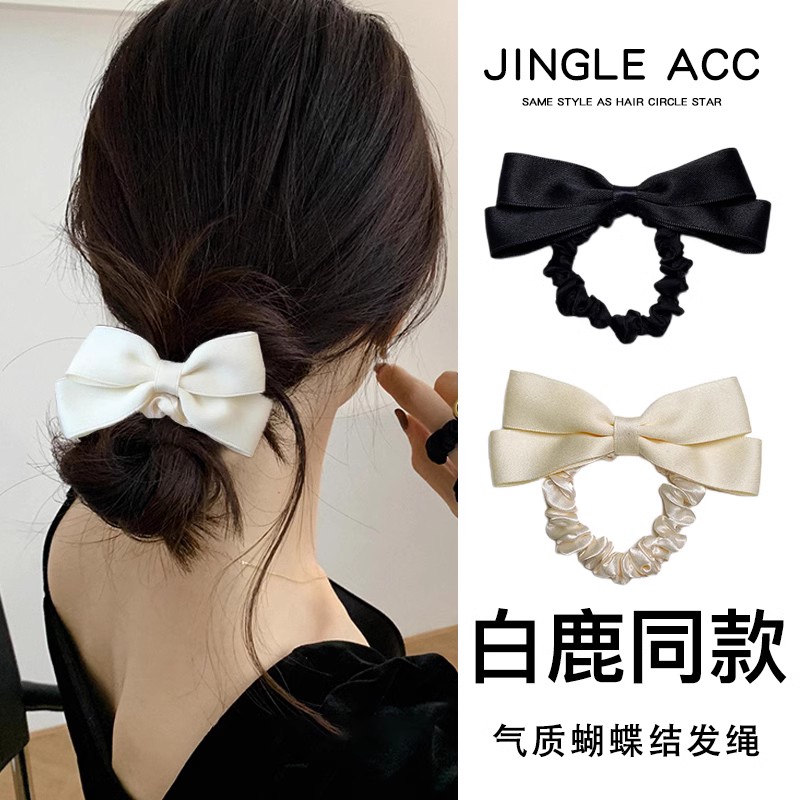 2023 new pearl hair ring female high elastic durable leather gluten advanced sensual rope girl butterfly knot hair rope headwear-Taobao