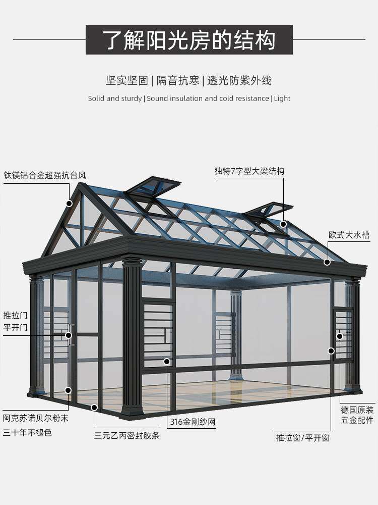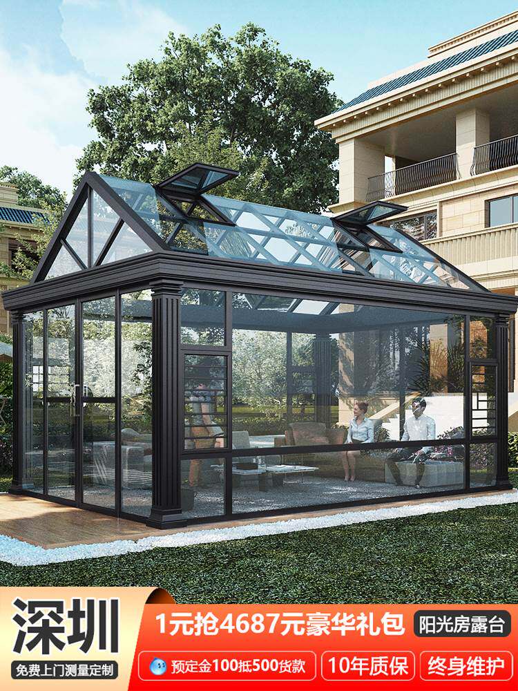 Villa Terrace Terrace Aluminum Alloy Yangguang Room Glass House Rain Shed Balcony Custom Patio Garden Outdoor Steel Frame Sunshine Shed-Taobao