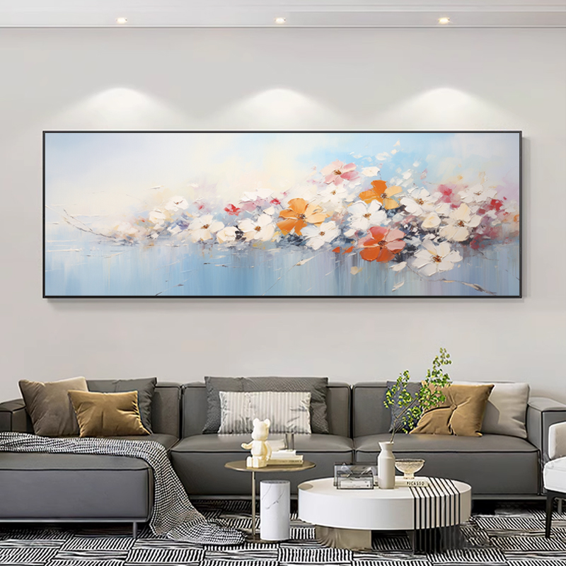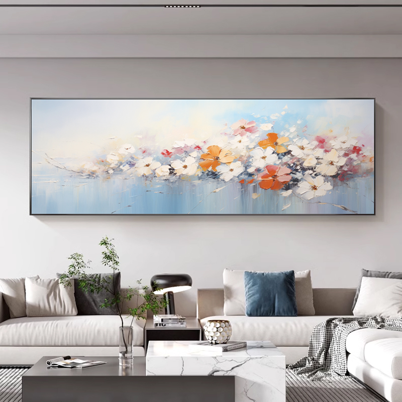 Bouvan Art Oil Painting Living Room Hung Painting Hand-painted Sofa Background Wall Decoration Painting of High Sensation Art Flowers-Taobao