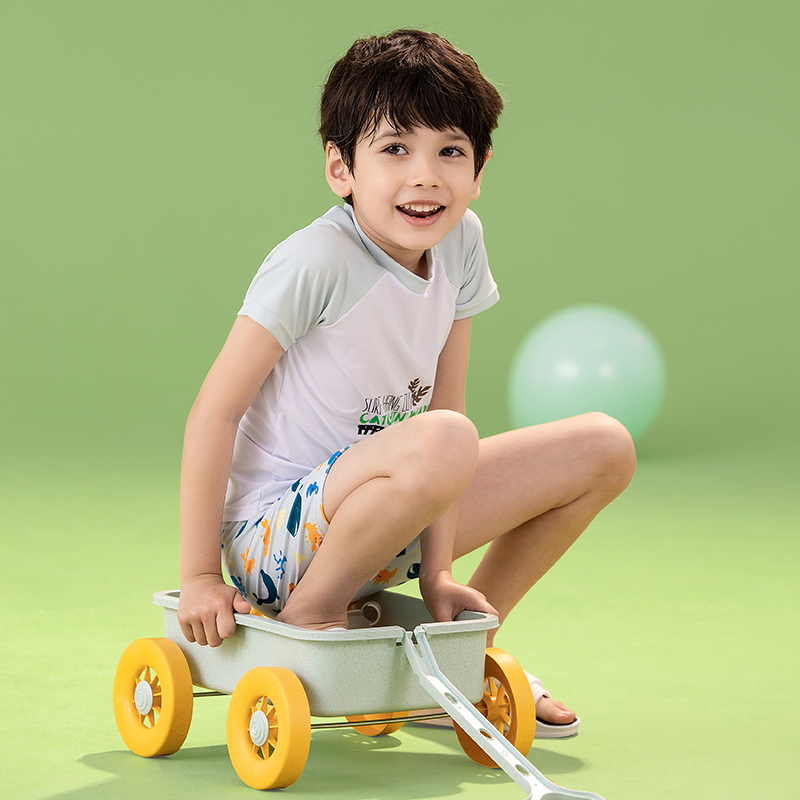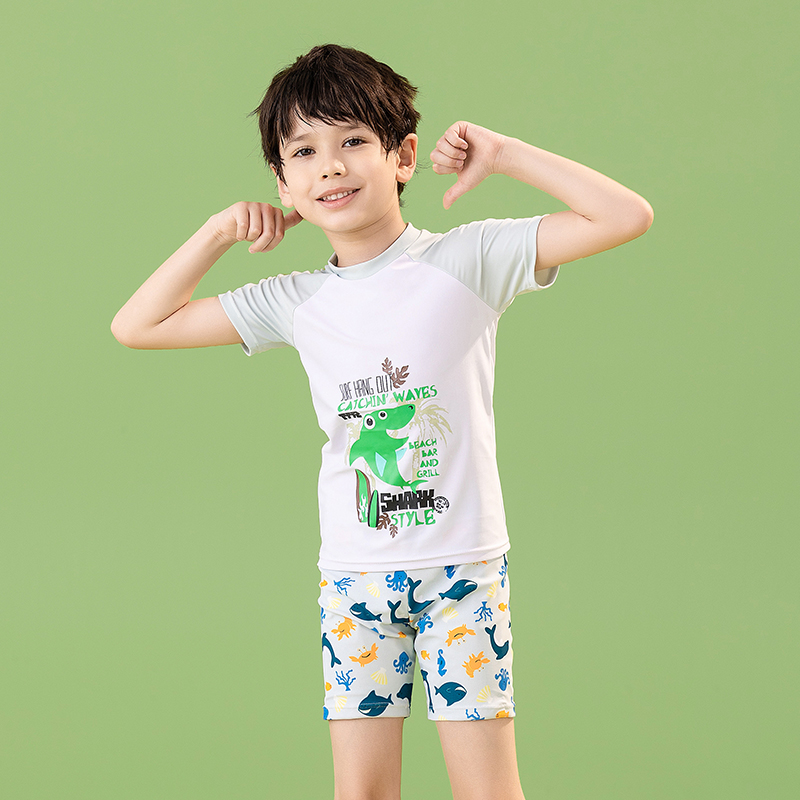 Children's swimsuit boys 2024 new split medium and large children's boys quick-drying warm swimsuit hot spring swimming trunks set