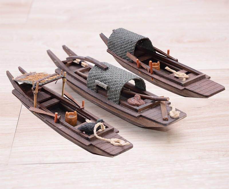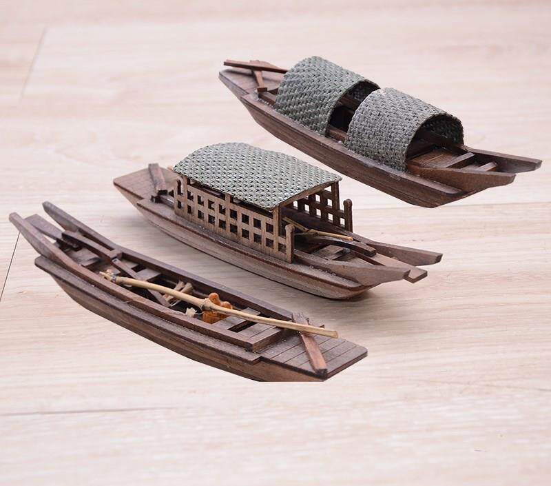Imitation ancient sailing decorations Small boat model handmade wooden small boat model boat model fishing boat Shaoxing urcanopy boat wooden boat-Taobao