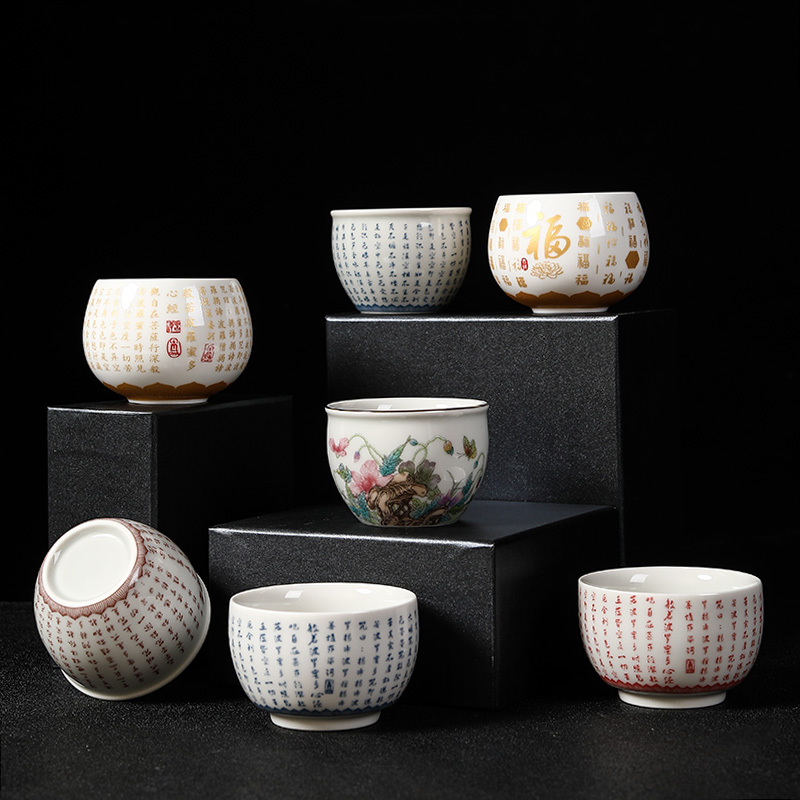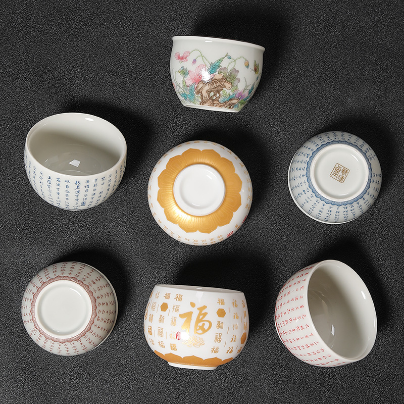 Shea Butter Jade White Porcelain Master Cup Single Cup Teacup Tea Cup individual Special large-capacity high-end pint cup-Taobao
