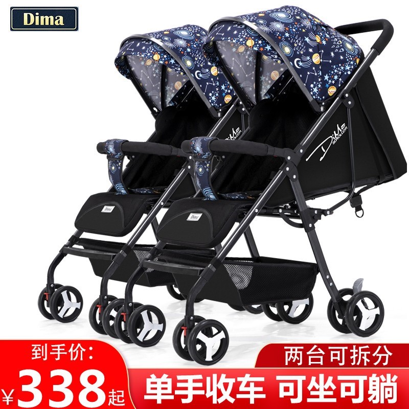 Dimar twin baby stroller can be split up to sit down with light shock absorbing folding small baby trolley-Taobao