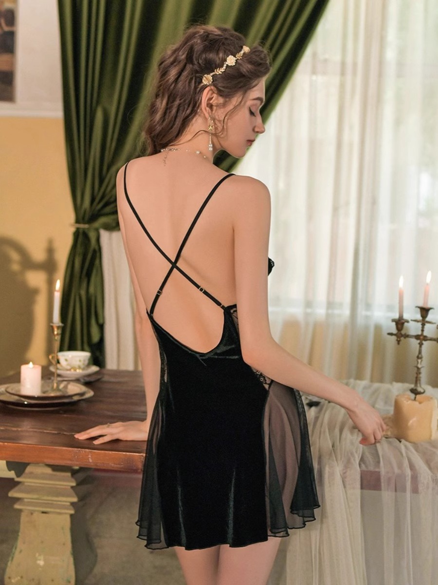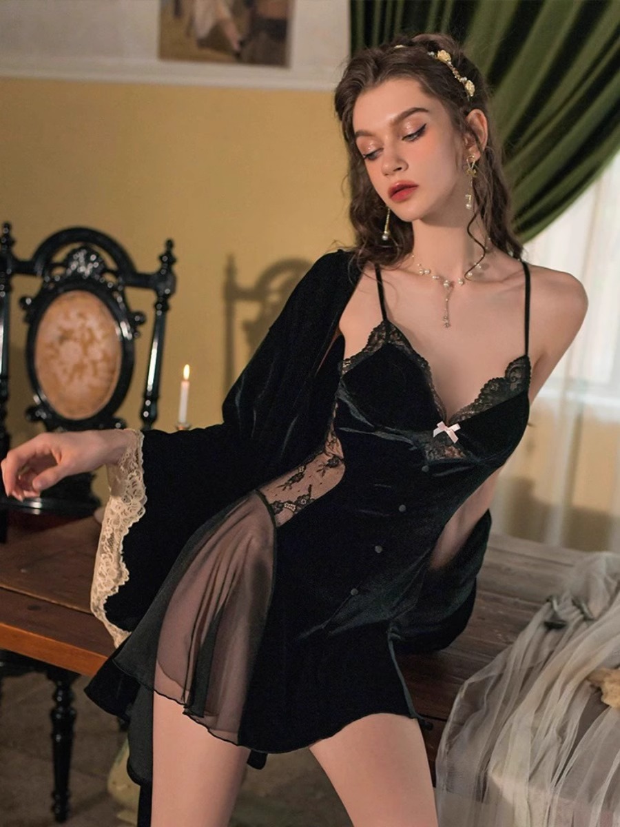 Sexy Sleepwear Woman Autumn Winter Velvet With Chest Cushion Small Chest Lace 2023 New Advanced Sense Harnesses Sleeping Skirt Suit-Taobao