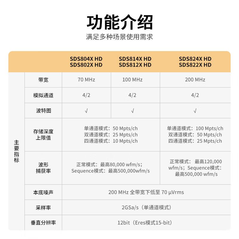 SDS802X HD (70M -- 2GSa s) SDS804X HD (70M -- 2GSa s) SDS812X HD (100M --