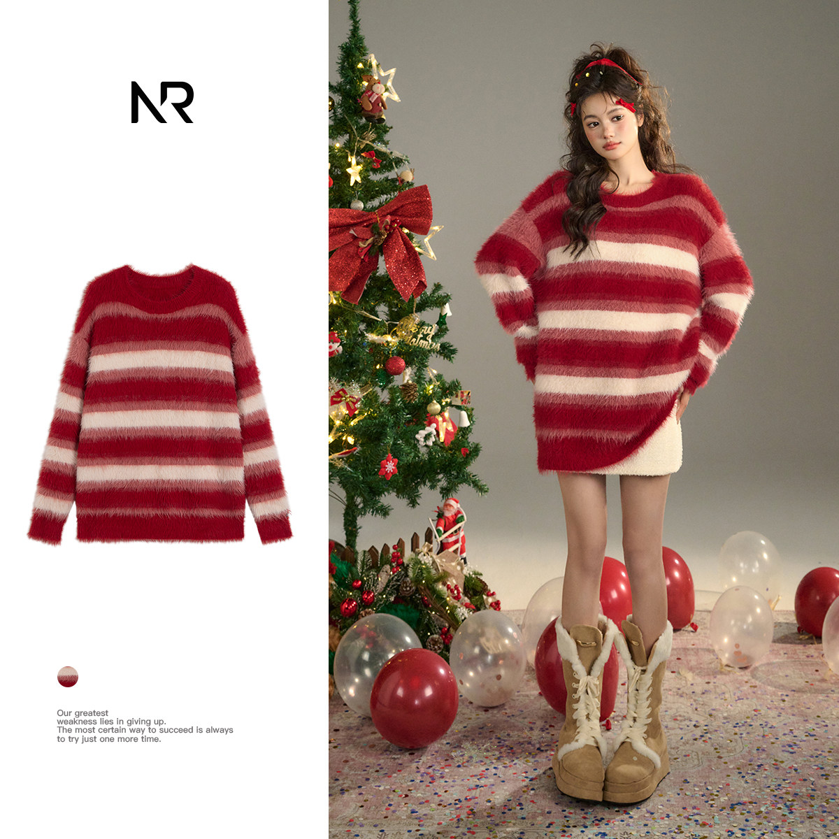 Christmas Atmosphere Sensation Red Striped Classic Round Collar Design Foundation 100 Hitch-Taobao