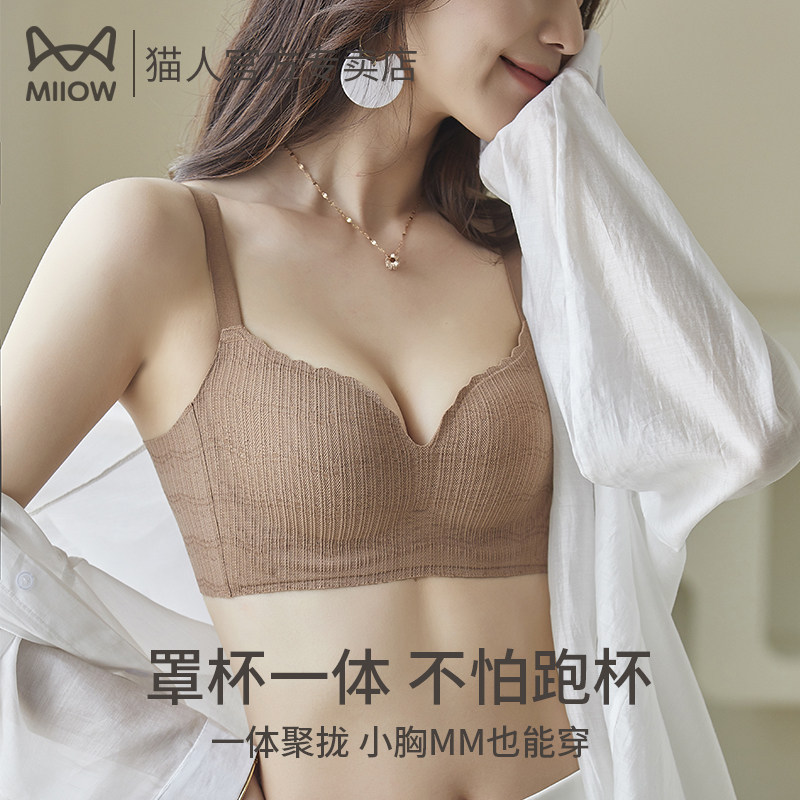Cat person lingerie female small breasts polygine with large anti-sagging collection of auxiliary milk without steel ring adjusting type sexy lace bra hood-Taobao