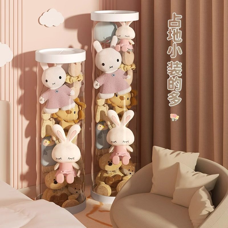 Large Capacity Doll Doll Containing Barrel Plush Toy Children Paparazzi Transparent Finishing Containing Basket Upgrade Zipped section-Taobao