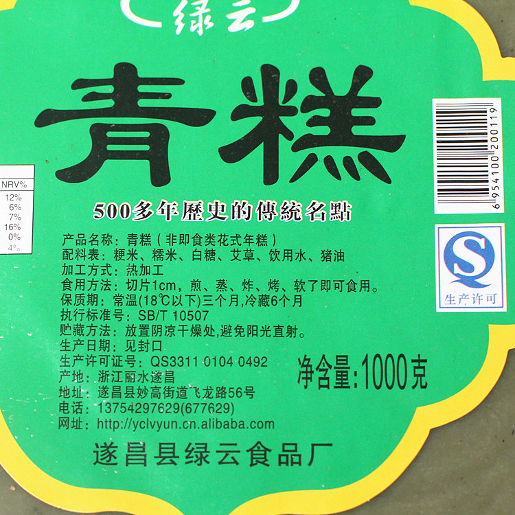 Annual products of Suichang special green cloud cake cake delicious round 1000 grams of Zhejiang Zhejiang Zhejiang