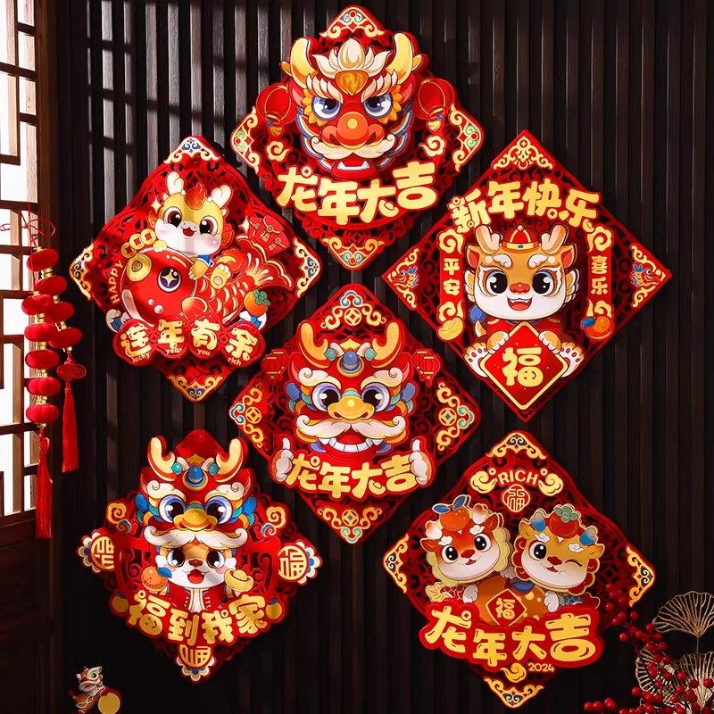 Dragon Year 2024 new Fuwordmen post New Year decorations New Year decorations Spring Festival Cubism to post Chinese New Year to the Spring Festival couplets for Spring Festival couplets-Taobao