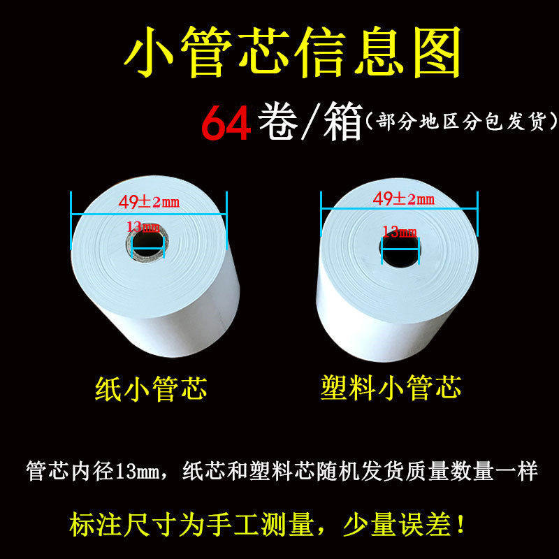 Common tube core cashier paper 100 volume diameter 43MM small tube core cashier paper 64 roll more cost-effective 57 * 50 rubber small tube core 100 roll more cost-effective