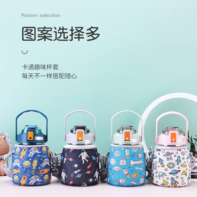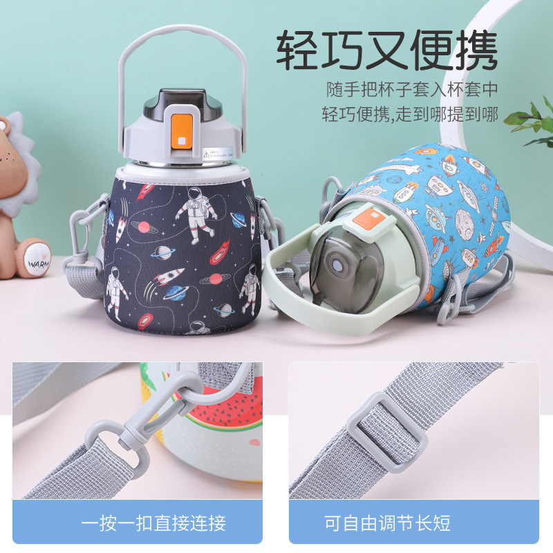 Outdoor big belly cup insulated cup cover portable student cartoon children's water glass protective sleeve resistant to fall and wear shoulder strap travel-Taobao