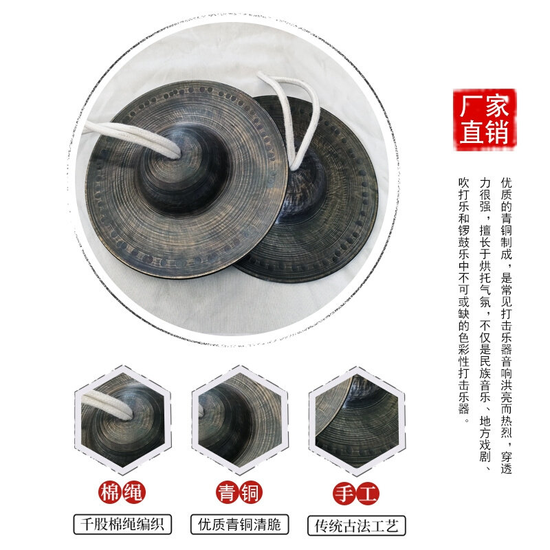 Bronze 12 cm Xiaojing cymbal bronze 15 cm Xiaojing cymbal bronze 17 cm Middle Beijing Bronze 19 Cm Great Jing Cymbal Bronze 21 cm Giant Jing Cymbal Bronze 26 Cm Large Hat Cymbal Bronze 28 Gong