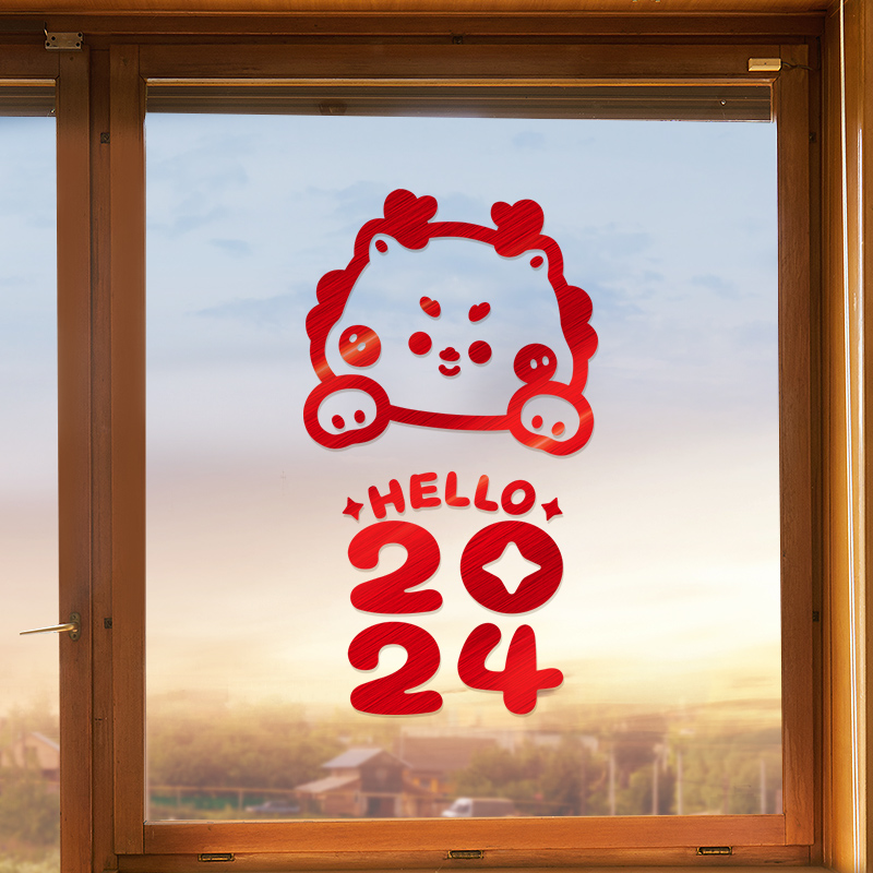 Window Flowers 2024 New Fu Character Window Sticker Dragon Year New Year Decorations Glass Door Stickers for Lunar New Year wall sticker painting-Taobao