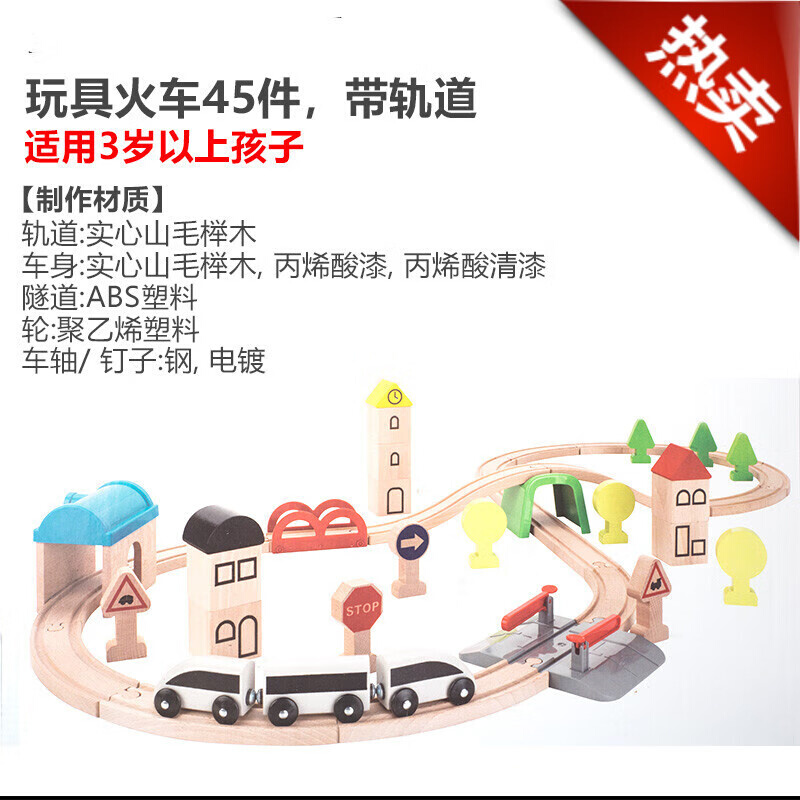 Source Ridge 2022 Solid Wood Train Model Toys Build Assembly With Magnet Electric Small Locomotive Tracks 50 pieces-Taobao