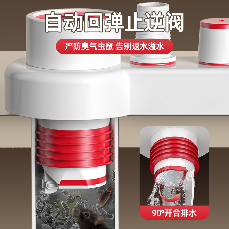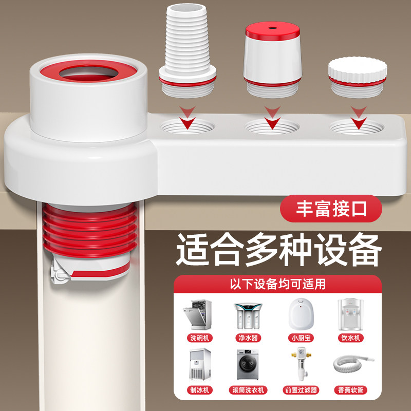 Kitchen Downpipe Three-way Head Sink Drain Pipe Water Purifier Dishwasher Multifunction Joint Pass Anti-Ink Smells-Taobao
