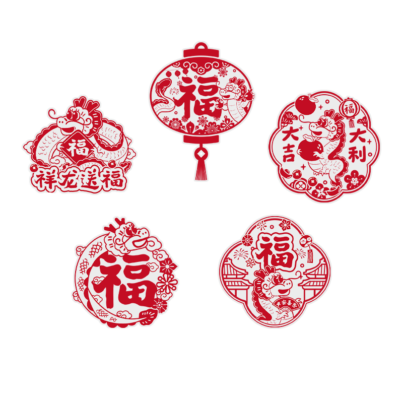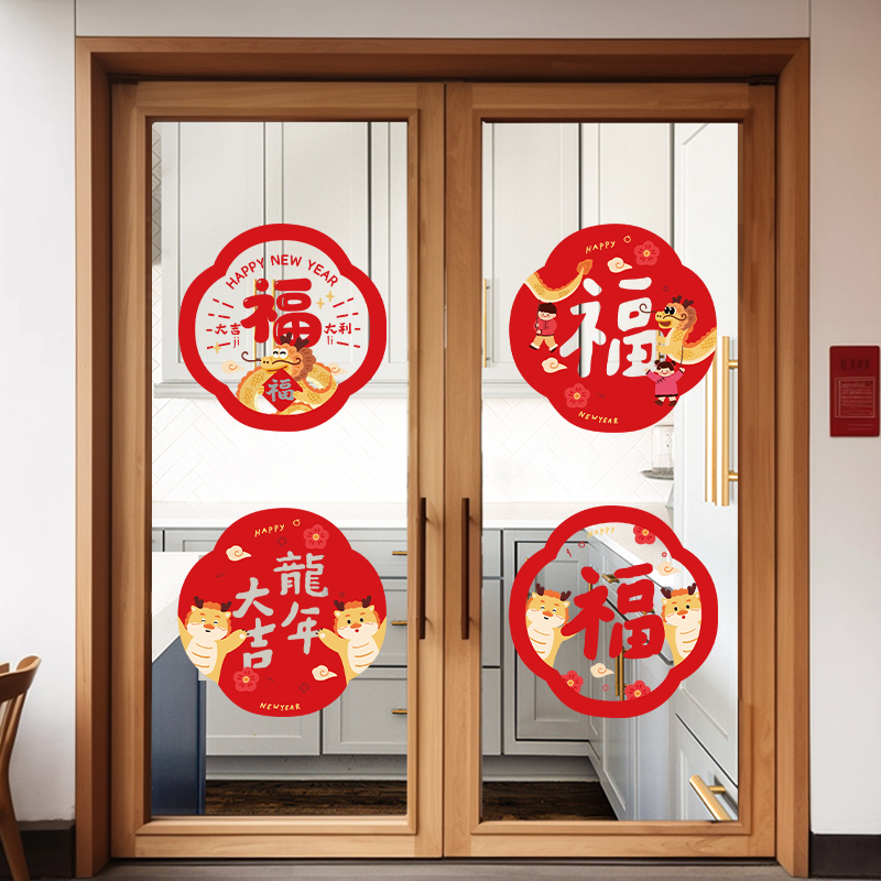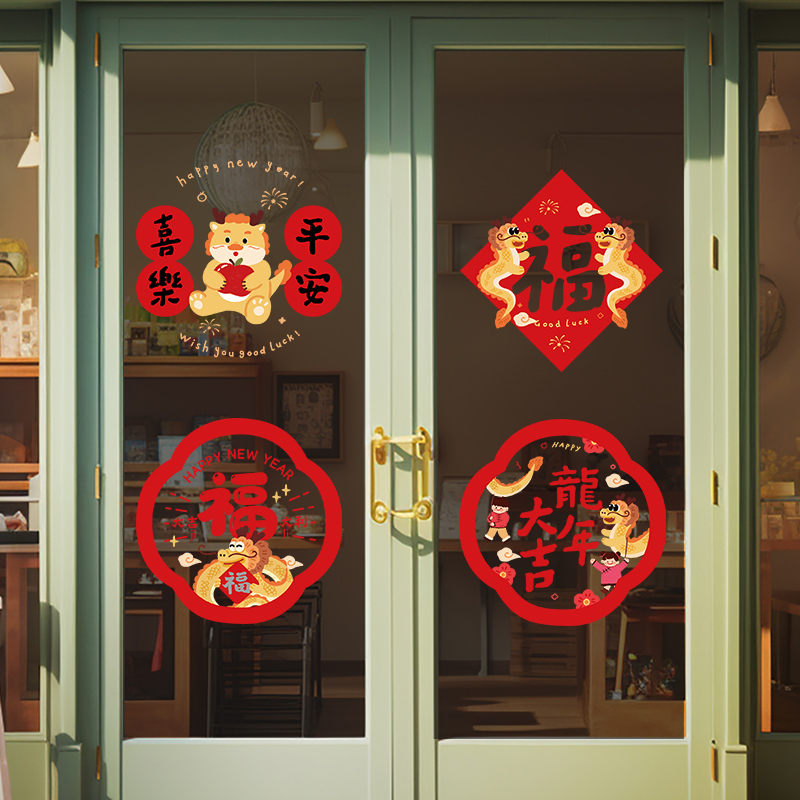 Dragon year static sticker New Year's window floral paper glass sticker 2024 Spring Festival Decorative Zodiac Sticker with Chinese New Year Foodie 3157-Taobao