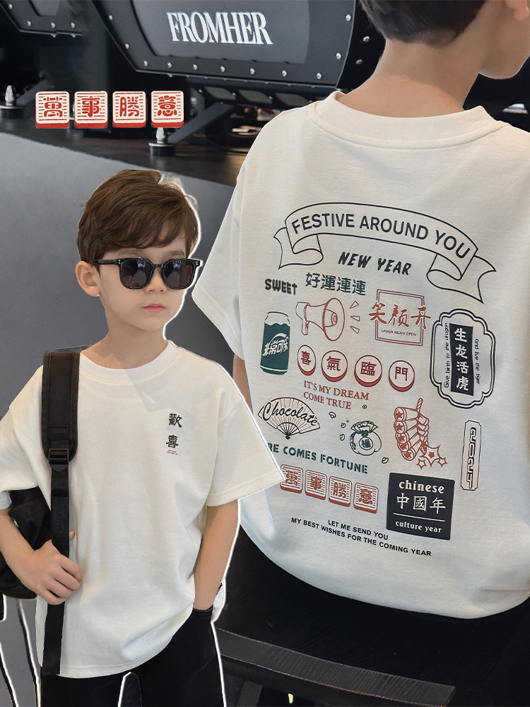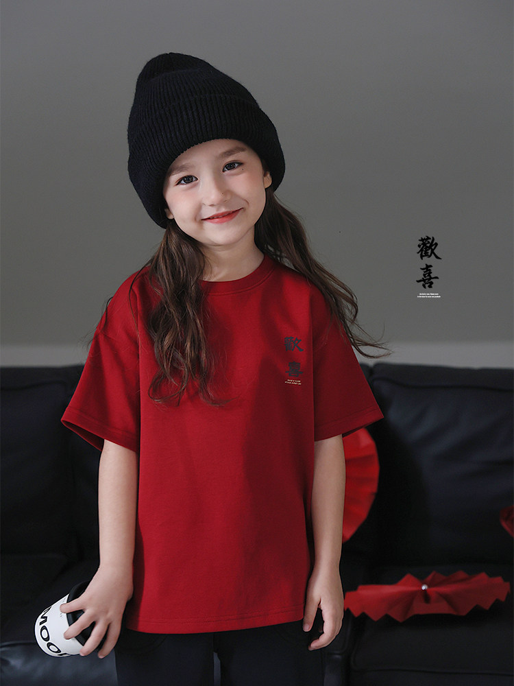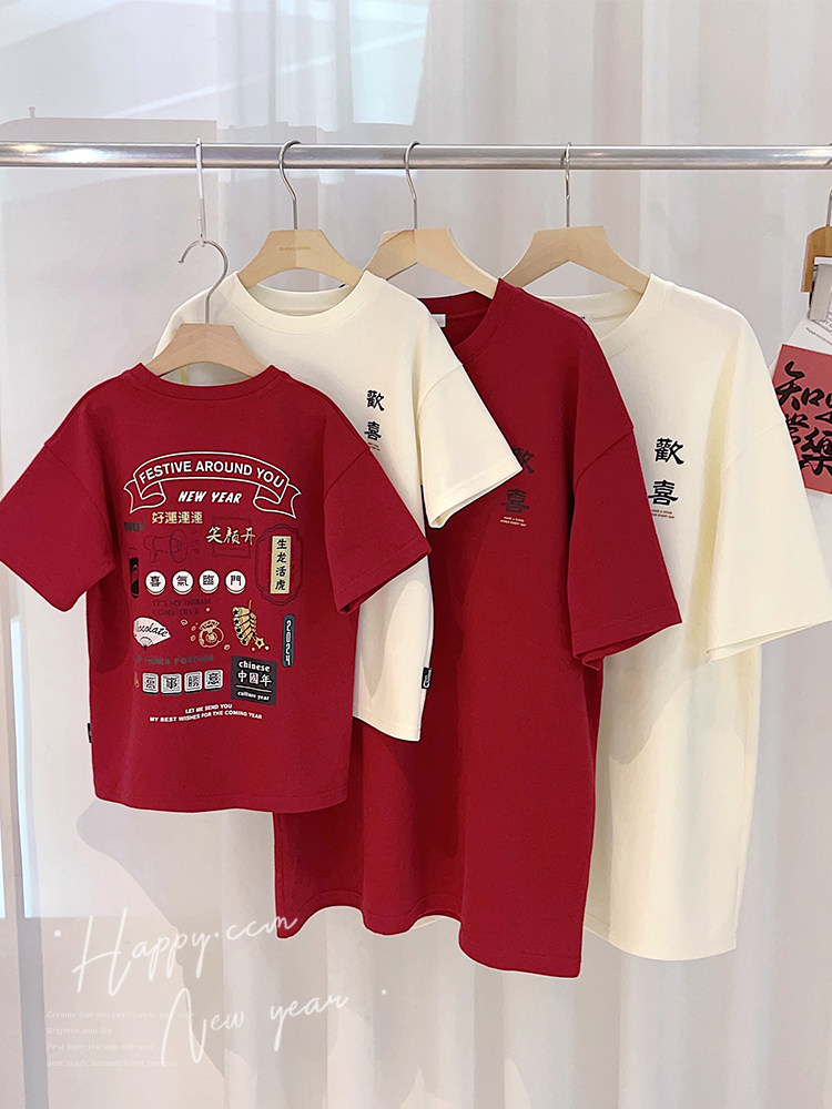 Chen Chen Mother Girl Girl Girl Short Sleeve T Shirt Spring Autumn New Foreign Air Kiss Collar China Red Child Blouses-Taobao