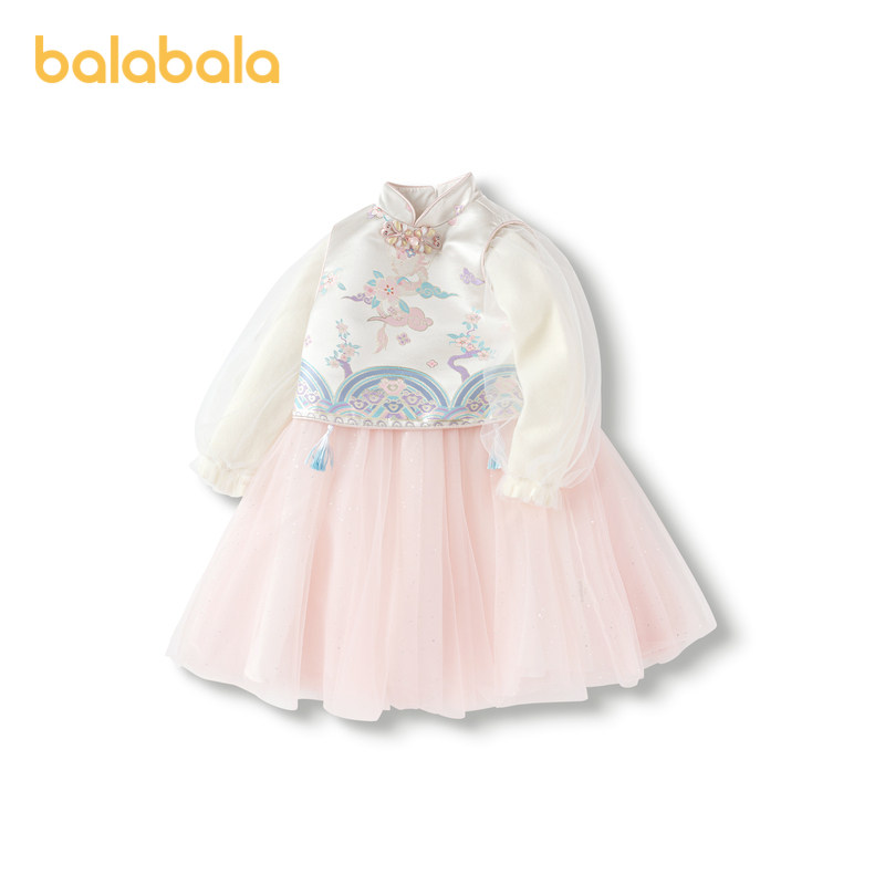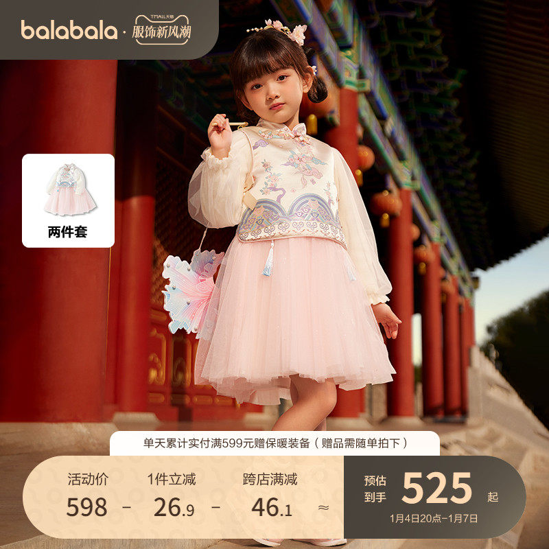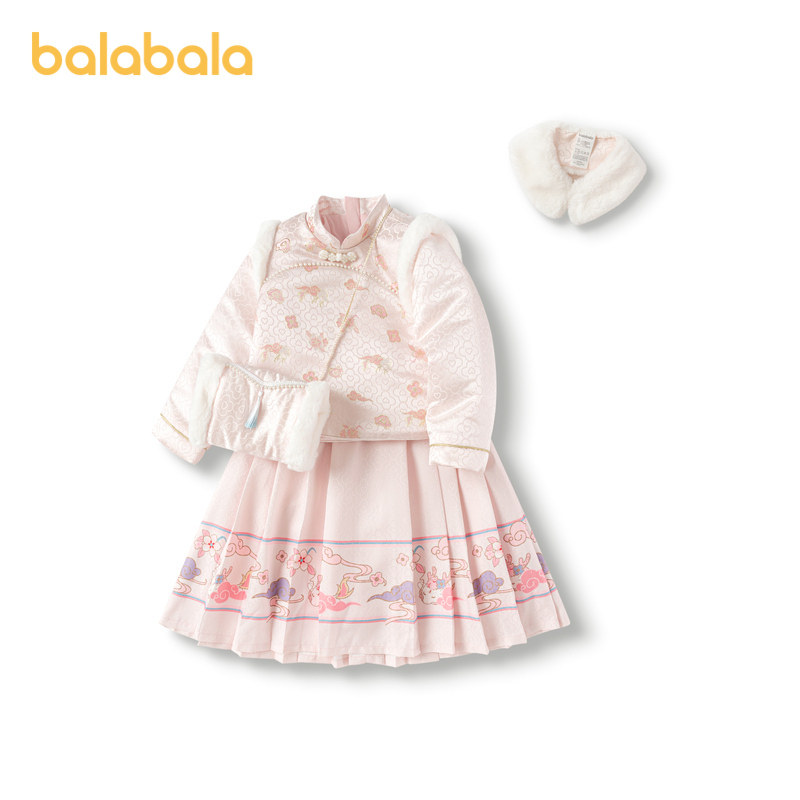 (Mall same paragraph) Balaba girl's national wind suit 2024 new children's horse face dress New Year's dress-Taobao